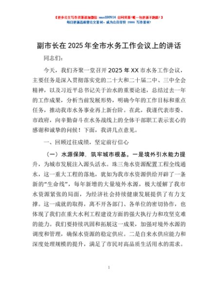 / 副市长在2025年全市水务工作会议上的讲话