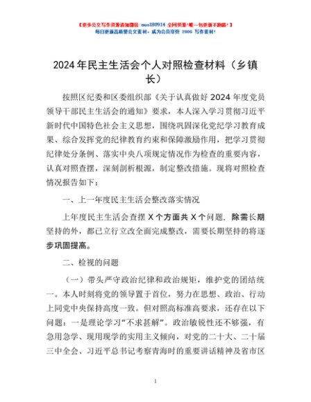 / 2024年民主生活会个人对照检查材料(乡镇长)