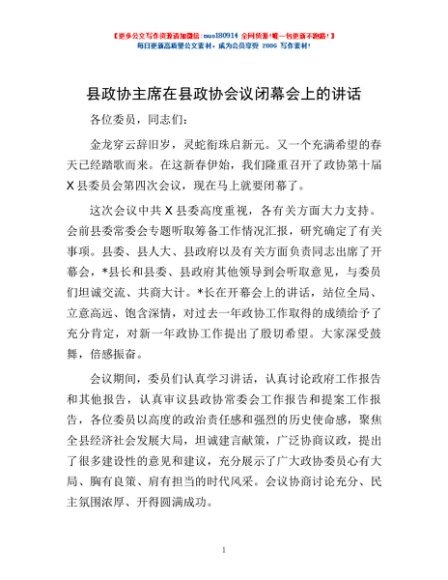/ 县政协主席在县政协会议闭幕会上的讲话