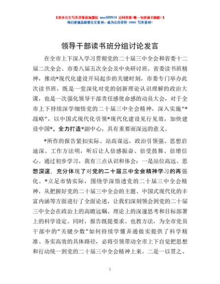 / 领导干部读书班分组讨论发言