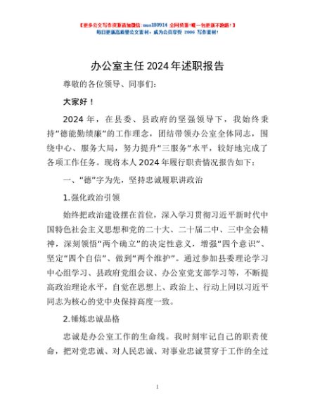 / 办公室主任2024年述职报告