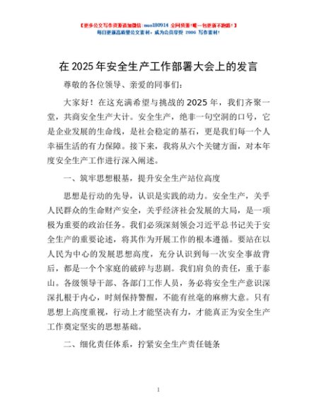 / 在2025年安全生产工作部署大会上的发言
