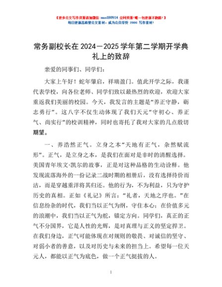/ 常务副校长在2024-2025学年第二学期开学典礼上的致辞