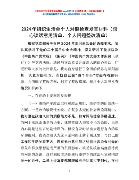 / 2024年组织生活会个人对照检查发言材料(谈心谈话意见清单、个人问题整改清单)