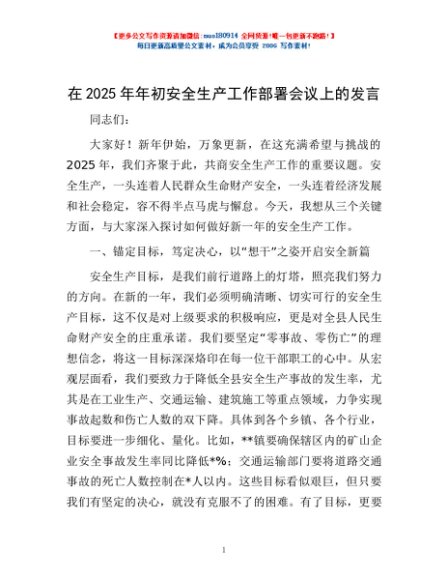 / 在2025年年初安全生产工作部署会议上的发言