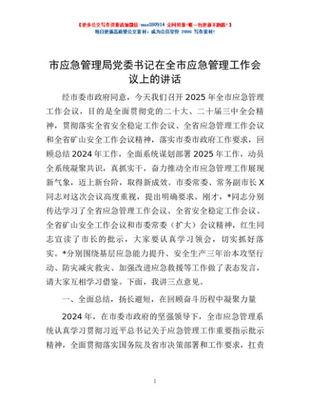 / 市应急管理局党委书记在全市应急管理工作会议上的讲话