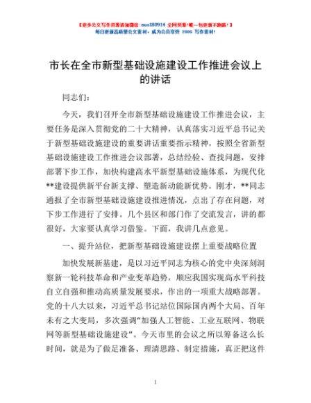 / 市长在全市新型基础设施建设工作推进会议上的讲话