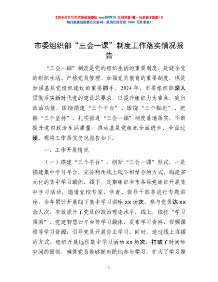 / 市委组织部“三会一课”制度工作落实情况报告