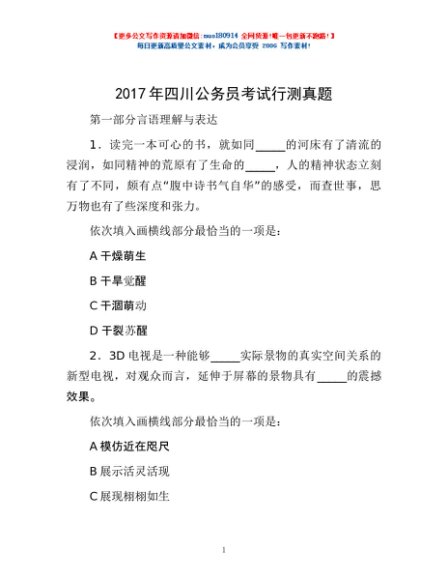 / 2017年四川公务员考试行测真题