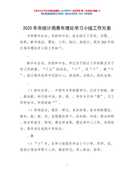 / 2025年市统计局青年理论学习小组工作方案