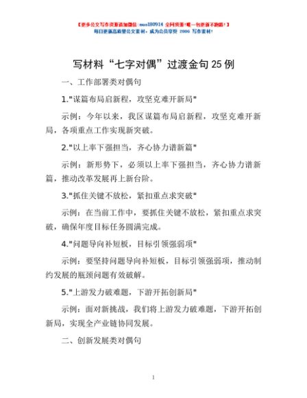 / 写材料“七字对偶”过渡金句25例