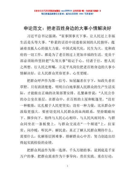 申论范文:把老百姓身边的大事小情解决好