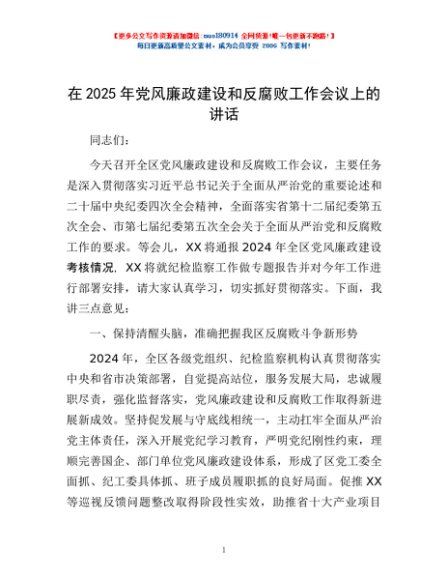 / 在2025年党风廉政建设和反腐败工作会议上的讲话