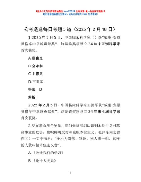 / 公考遴选每日考题5道(2025年2月18日)