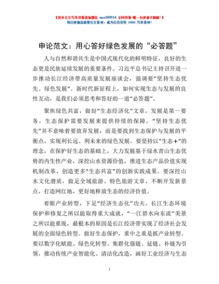 / 申论范文:用心答好绿色发展的“必答题”