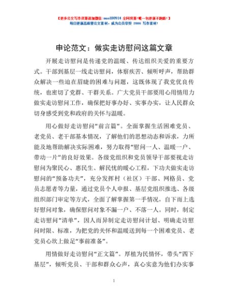 申论范文:做实走访慰问这篇文章