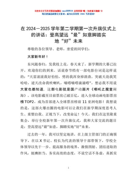 / 在2024-2025学年第二学期第一次升旗仪式上的讲话:登高望远“最”如意脚踏实地“好”未来