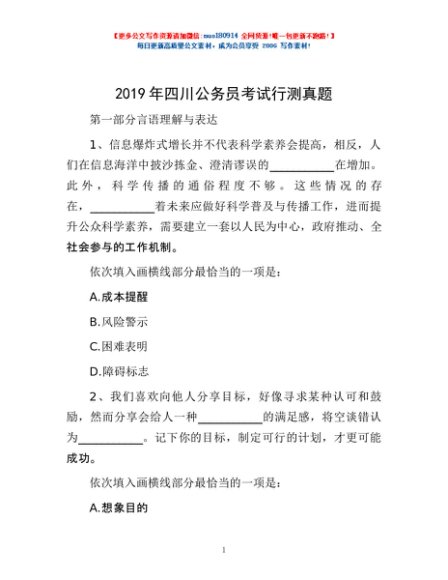 / 2019年四川公务员考试行测真题