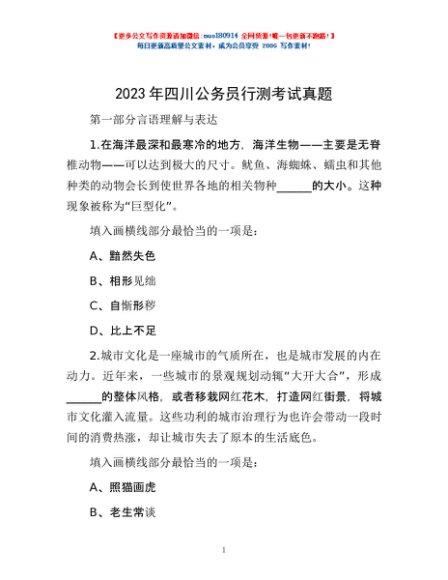 / 2023年四川公务员行测考试真题