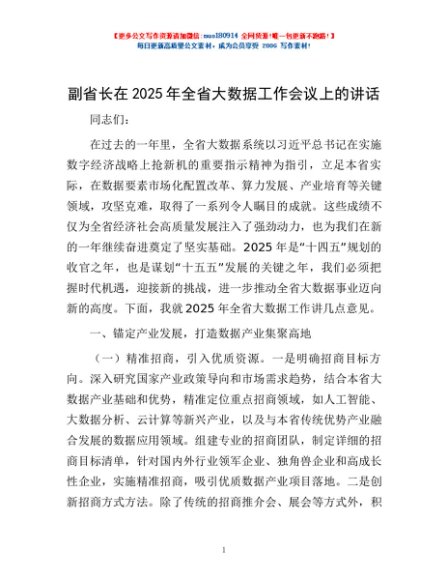 / 副省长在2025年全省大数据工作会议上的讲话