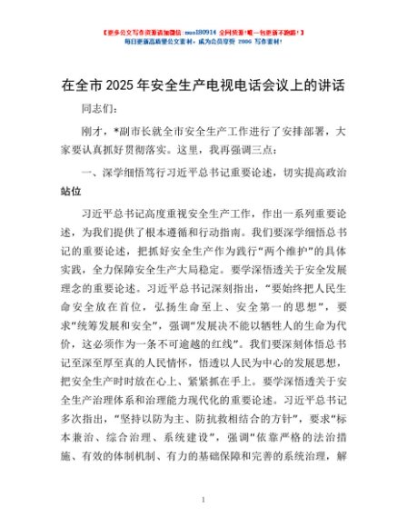 / 在全市2025年安全生产电视电话会议上的讲话