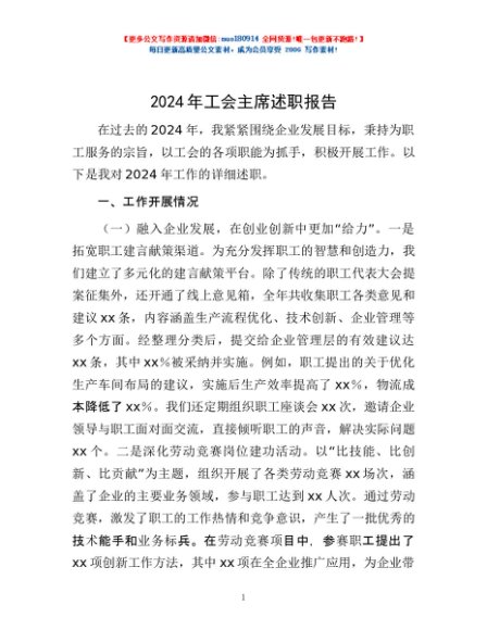 / 2024年工会主席述职报告