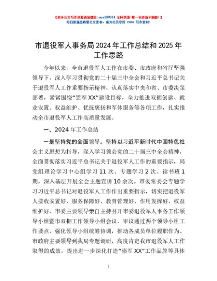 / 市退役军人事务局2024年工作总结和2025年工作思路