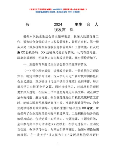 / 市税务局党委副书记2024年度民主生活会个人对照检视发言材料