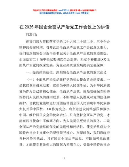 / 在2025年国企全面从严治党工作会议上的讲话
