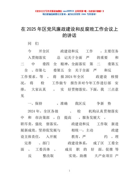 / 在2025年区党风廉政建设和反腐败工作会议上的讲话