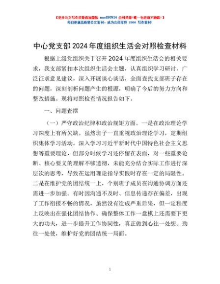 / 中心党支部2024年度组织生活会对照检查材料
