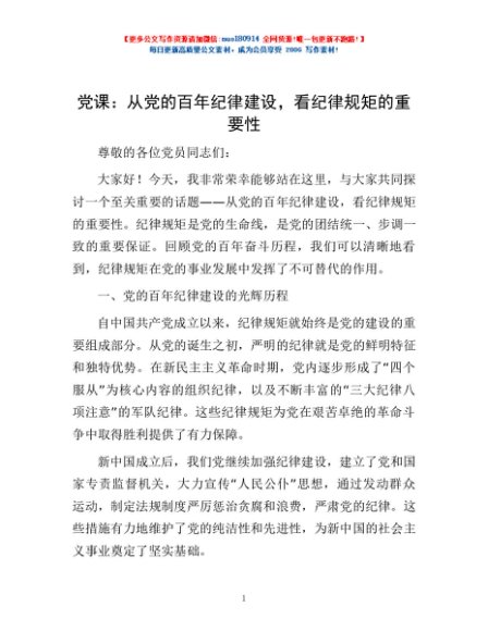 / 党课:从党的百年纪律建设,看纪律规矩的重要性