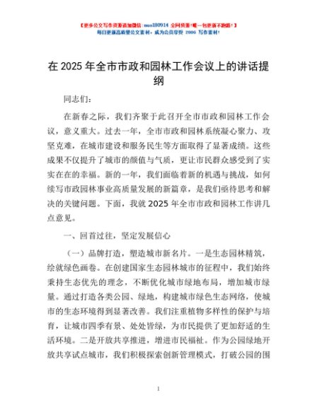 / 在2025年全市市政和园林工作会议上的讲话提纲