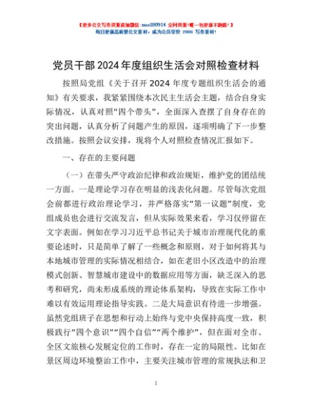 / 党员干部2024年度组织生活会对照检查材料