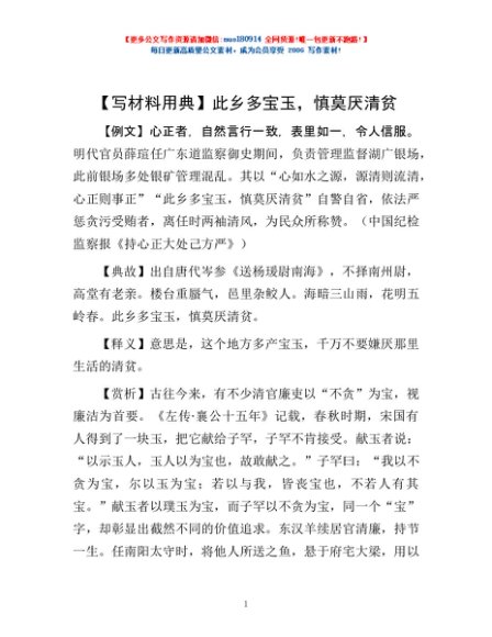 【写材料用典】此乡多宝玉,慎莫厌清贫