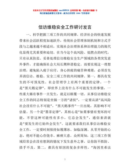 / 信访维稳安全工作研讨发言