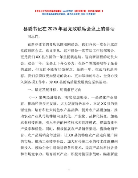 / 县委书记在2025年县党政联席会议上的讲话