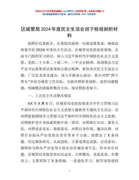 / 区城管局2024年度民主生活会班子检视剖析材料