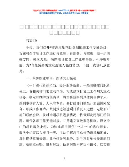/ 在2025年全市高质量项目谋划推进工作专班会议上的讲话