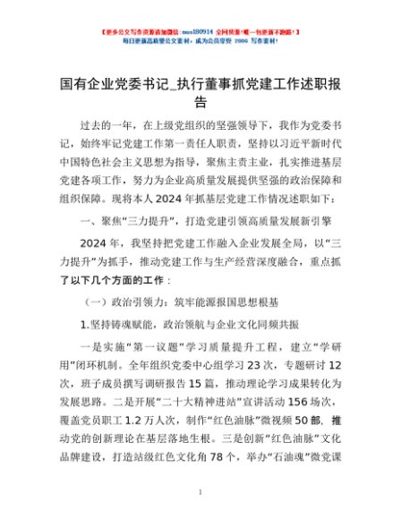 / 国有企业党委书记_执行董事抓党建工作述职报告