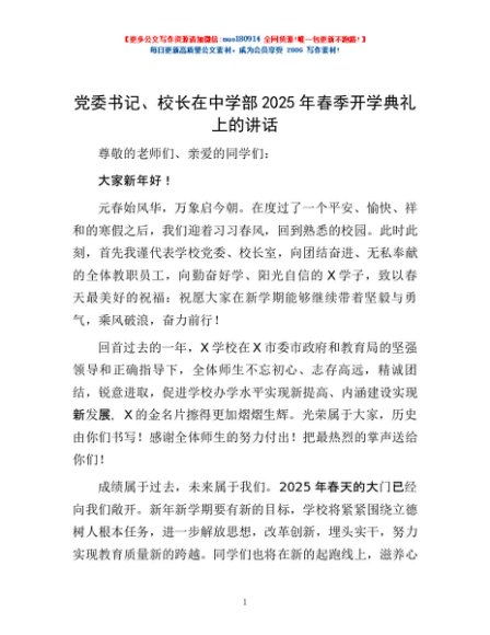党委书记、校长在中学部2025年春季开学典礼上的讲话