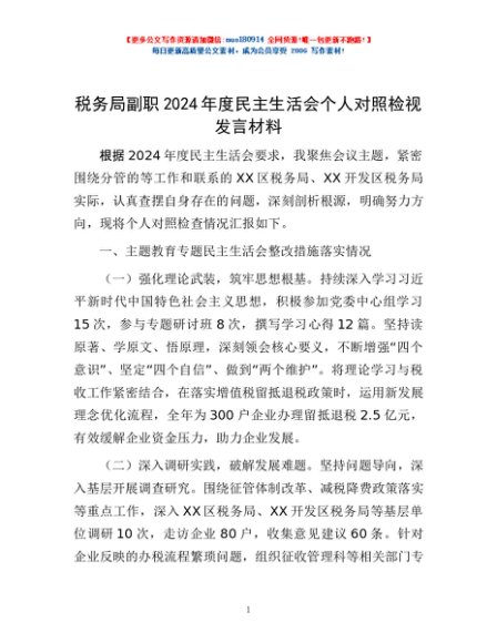 / 税务局副职2024年度民主生活会个人对照检视发言材料