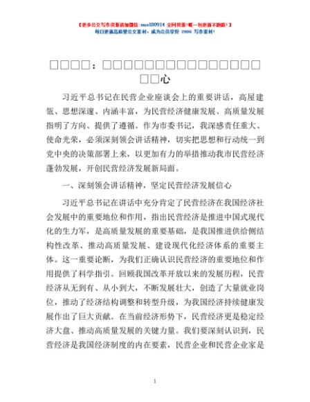 / 学习感悟:深刻领会讲话精神 坚定民营经济发展信心