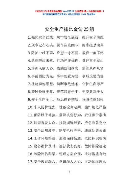 / 安全生产排比金句25组
