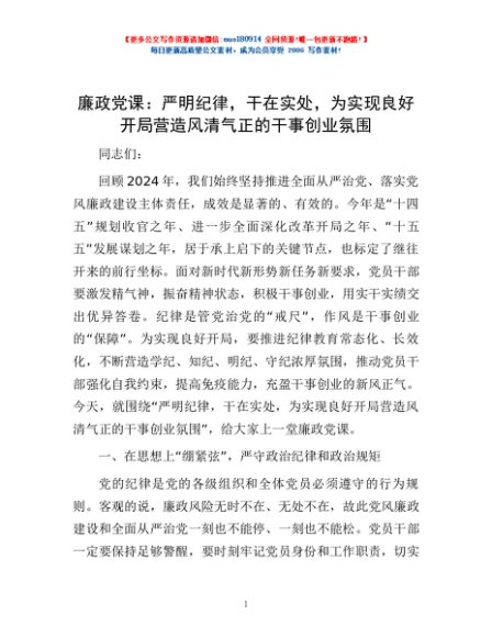 廉政党课:严明纪律,干在实处,为实现良好开局营造风清气正的干事创业氛围