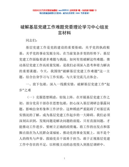 / 破解基层党建工作难题党委理论学习中心组发言材料