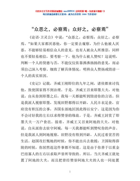 / “众恶之,必察焉;众好之,必察焉”
