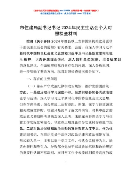 / 市住建局副书记书记2024年民主生活会个人对照检查材料