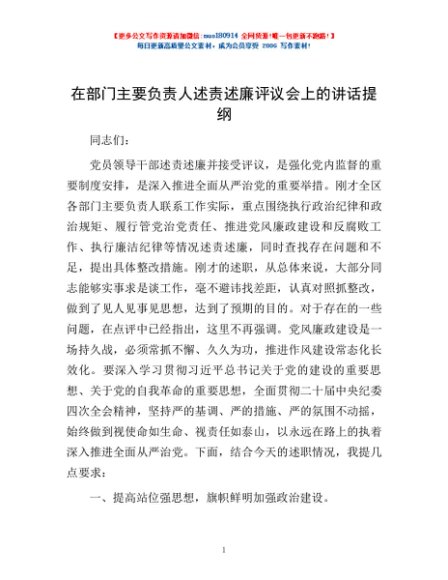 / 在部门主要负责人述责述廉评议会上的讲话提纲
