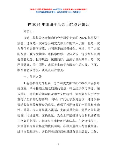 / 在2024年组织生活会上的点评讲话